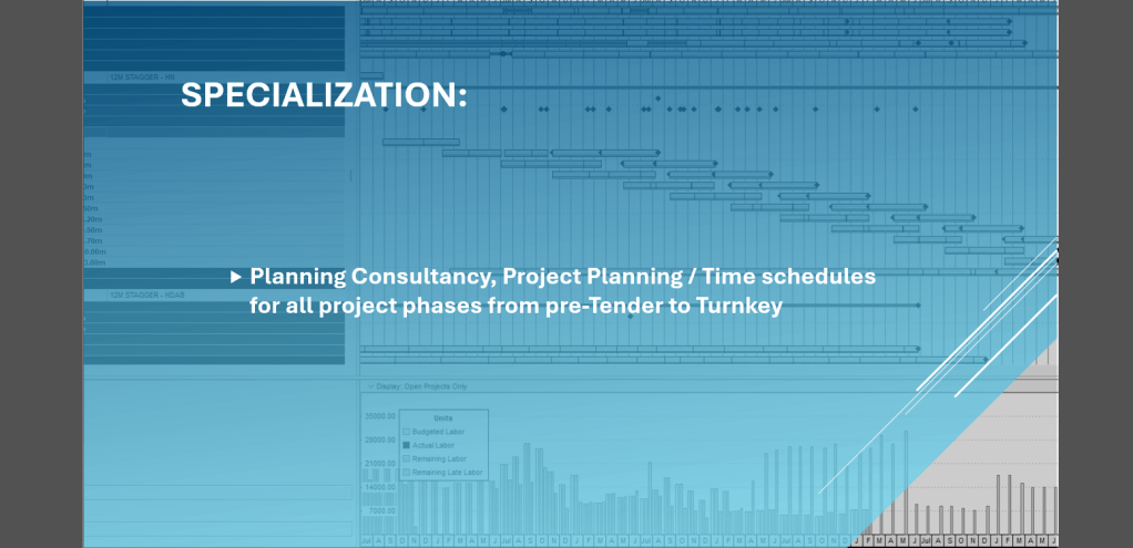Our planning specialists are here to work with you to provide a winning strategy for your projects. Project Planning / Time schedules for all project phases from pre-Tender to Turnkey.